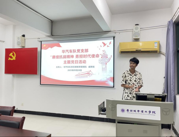 本网讯(记者 冉艾馨)为纪念中国人民抗日战争暨世界反法西斯战争胜利80周年,汽车与交通工程学院华汽车队党支部于9月28日成功举办了“赓续抗战精神,勇担时代使命”主题党日活动。党支部书记陈增起以及全体(预备)党员、入党积极分子参加了本次活动,活动由戚韩锐同志主持。